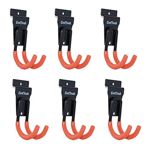 Review CoolYeah Slatwall Hooks Heavy Duty, Garage Storage Utility Double Hooks for Organizing Power Tools, Small J Hooks(Pack of 6, 4.7 × 1.9 × 2.5 inches)
